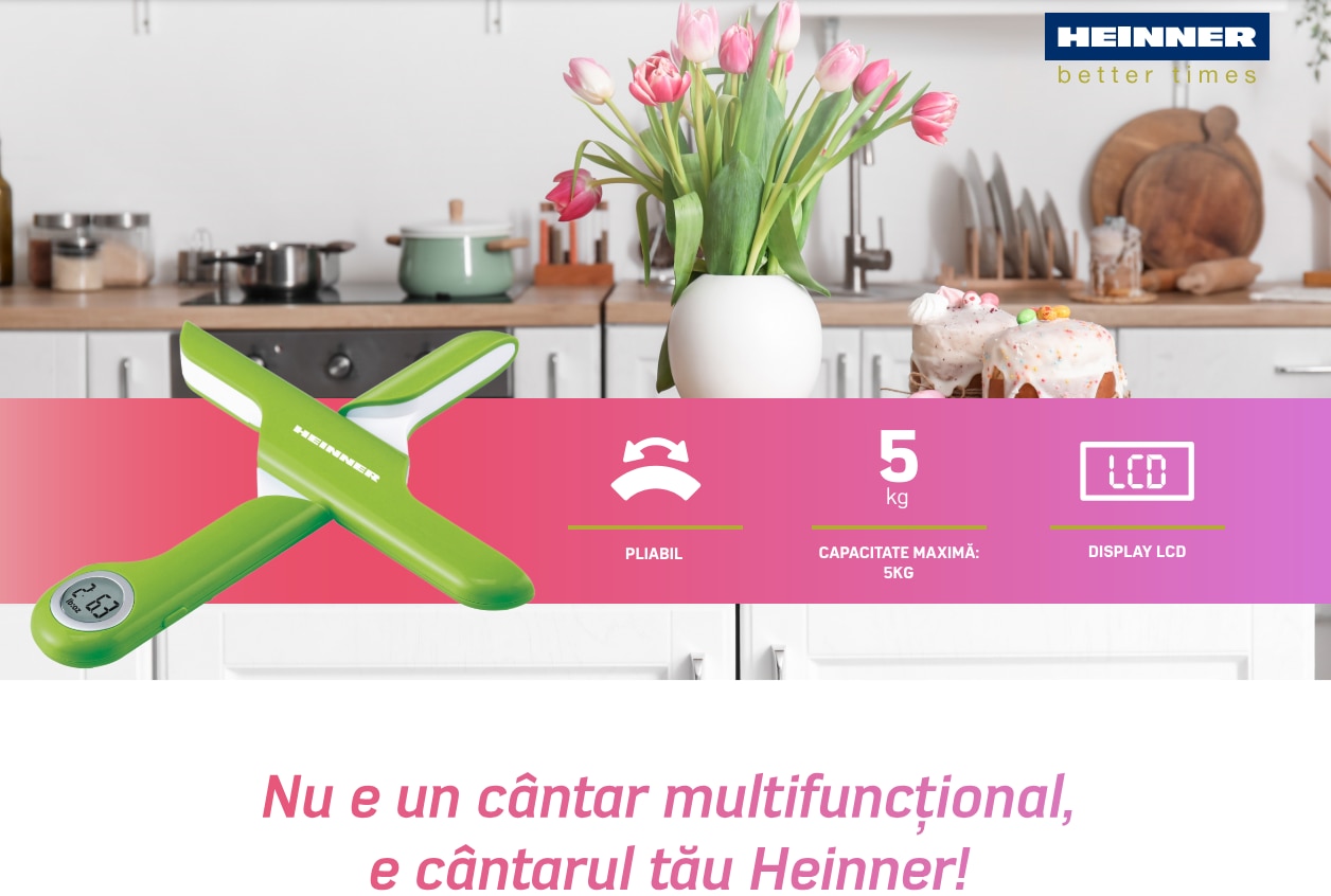 Cantar de bucatarie pliabil Heinner HKS-FD5GR, 5kg, display lcd, gradare: 1g, baterii: 1 x cr2032 (inclusa), verde
