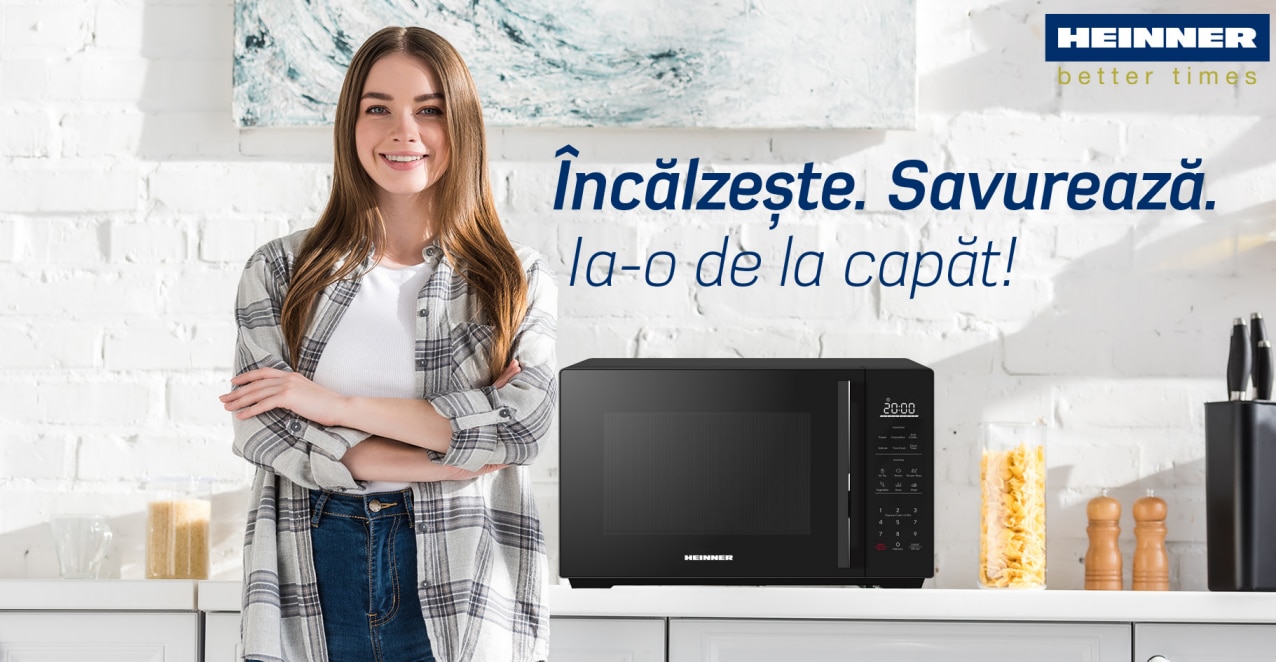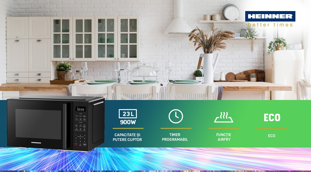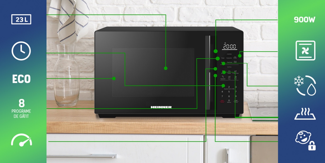Cuptor cu microunde Heinner HMW-MD23AFBK, functie AirFryer, 23 l, Control digital, 900 W, Negru