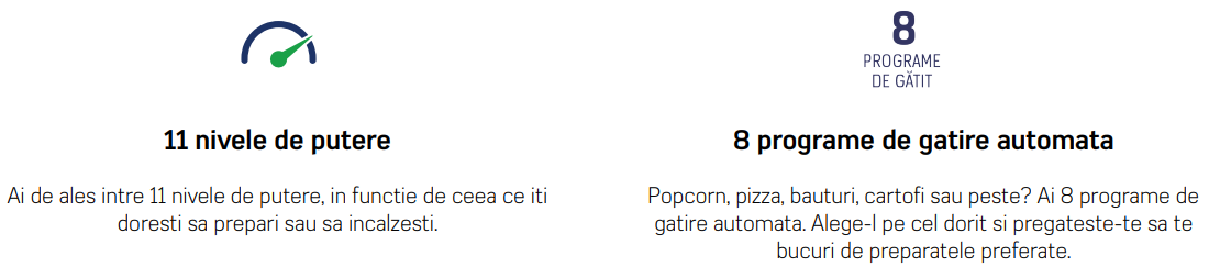 Modul ECO In modul ECO, functiile esentiale ale cuptorului cu microunde sunt mentinute cu un consum minim de energie electrica pentru a reduce factura de energie. |