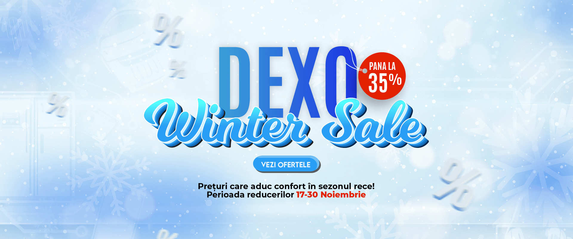 Dexo Winter Sale îți aduce confort în sezonul rece cu reduceri reale la produsele tale preferate. De la electrocasnice esențiale până la gadgeturi utile în fiecare zi, găsești oferte speciale cu până la 35% reducere, valabile între 17–30 Noiembrie.