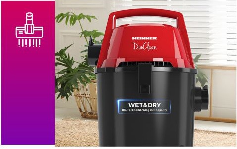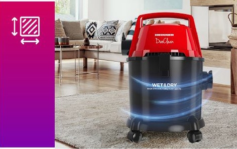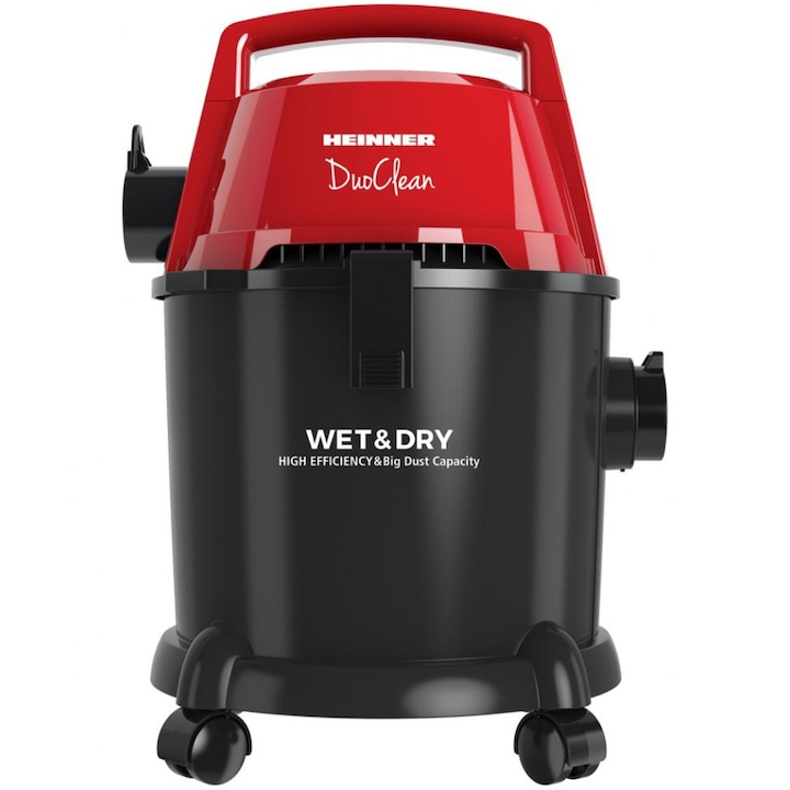 Aspirator multifunctional cu aspirare umeda si uscata HEINNER DuoClean HVC-MWD1400P-BK, 1400W, 15L, functie suflare, sac 3 L, filtru HEPA, negru/rosu