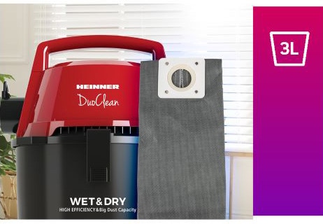 Aspirator multifunctional HEINNER DuoClean HVC-MWD1400P-BK, putere 1400W, functie aspirare umeda si uscata, functie suflare, recipient din plastic, capacitate 15l, sac textil 3l, filtru HEPA, tuburi de plastic, accesorii: perie mare pentru aspirare uscata, perie pentru aspirare umeda, perie pentru spatii inguste.