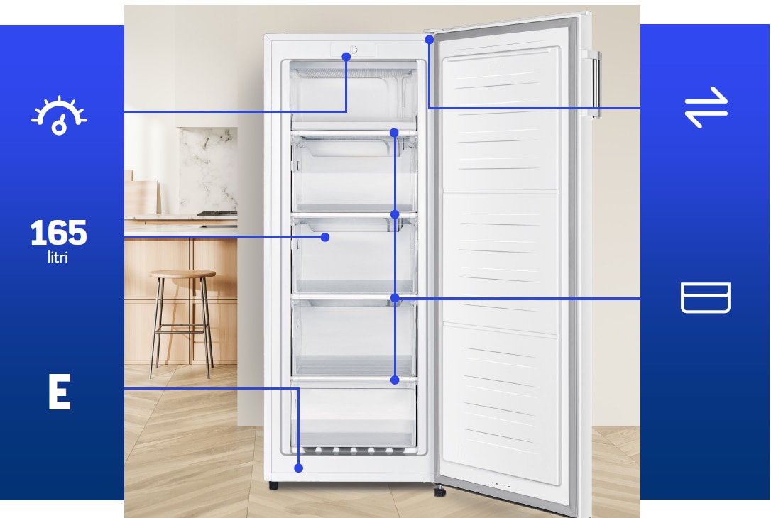 Capacitatea mare de depozitare, de ajutor in orice gospodarie, iti permite sa pastrezi cantitati considerabile de alimente si sa te bucuri de alimentele preferate tot anul.