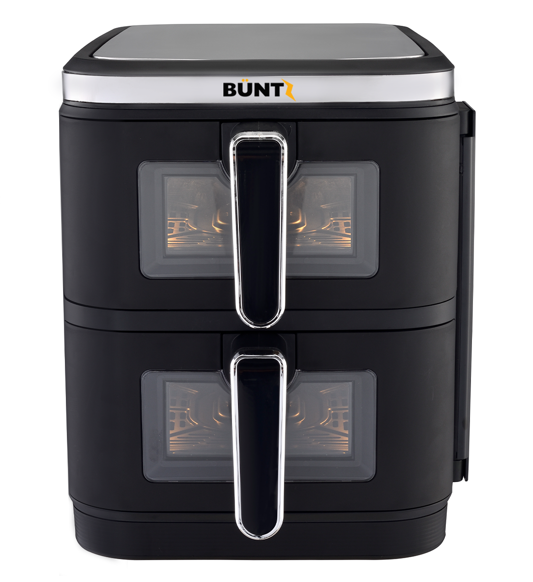 Buntz Friteuza cu aer cald fara ulei Buntz, 11L, 2800W, 2 cosuri independente (1400W+1400W), 10 functii gatire, Display tactil si color, Termostat reglabil 60-200˚ C, Negru