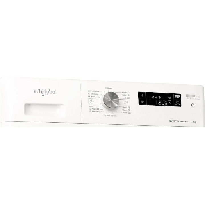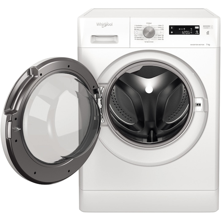 Masina de spalat rufe Whirlpool FreshCare+ FFS 7469 W EE, 7 kg, 1400 RPM, Clasa A, Tehnologia AL 6-lea Simt, MotorSense Inverter, Alb